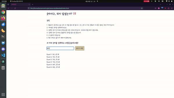 | 자바스크립트로 숫자 야구를 만들어보자 (0) | 2024.04.28 |