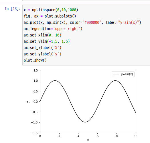 ax.plot(x, np.sin(x), color="#000000", label="y=sin(x)")