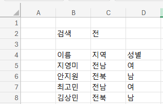 여기 가상의 명단이 있다. 그리고 검색 바로 뭘 할거냐면 지역으로 회원을 검색할거다.