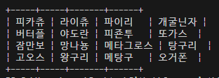 저 표가 지금 제목 말고 다른건 다 일정해서 그런데, ljust가 적용되어 있으면 왼쪽정렬 하고 남는 글자만큼을 뭘로 채운다. 저기 몇 개3글자가 아닌 걸로 바꿔보면