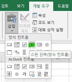 개발 도구-삽입에 가면 스핀 단추가 있다.