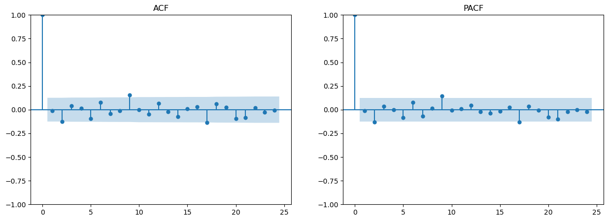이게 문제여 이게... 둘이 그래프가 거의 클론이여 클론... 아니 원래는 한쪽이 슬금슬금 떨어지고 한쪽에 팍 꺾이는 예시를 보여주면서 음 이건 AR이구나 이건 MA구나 하려고 했는데 얘는 여기서 뭘 더 할 필요가 없이 걍 저걸로 땡임... 차분 한 번 했더니 백색 잡음만 남아버려서 AR이고 MA고 못해요... 일단 제미나이 피셜 이 그래프는 개같이 깔끔한 그래프가 맞음.