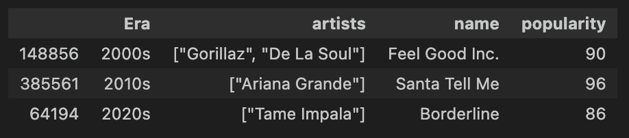 era_boss_songs = song_2000.loc[song_2000.groupby('Era', observed=True)['popularity'].idxmax()]