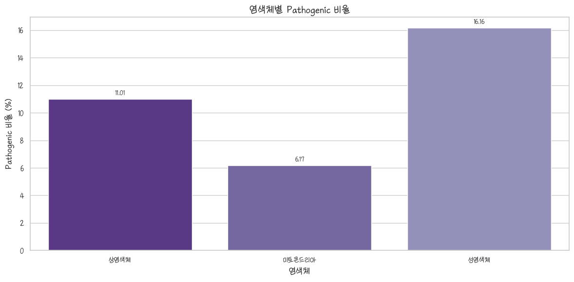 뭔가… 비중이 생각보다 얼마 안됨… 아, Pathogenic은 발병시키는, 병원(호스피털 말고)성의 뭐 그런 뜻이다. 그니까 패소제닉한건 터지면 병되는건데 이게 유전자 바이 유전자지만 암이 되는 경우도 있고, 유전병이 되는 경우도 있다.