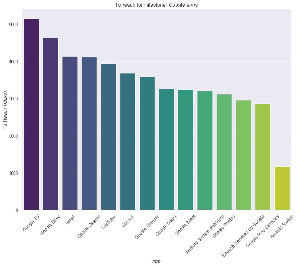 plt.title('To reach for milestone: Google apps')