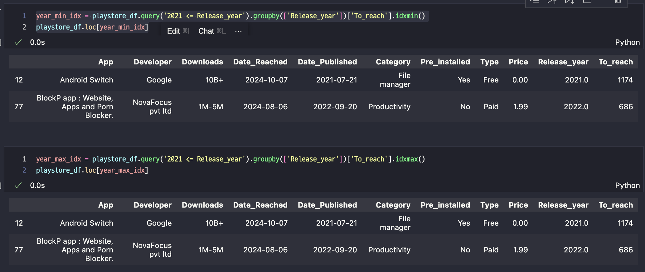 max_idx = playstore_df.groupby('Downloads')['To_reach'].idxmax()