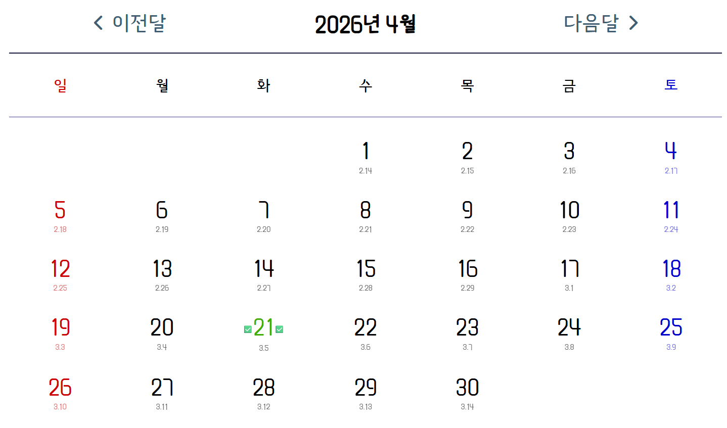 - 달력에 기능 추가하기 2026.04.21