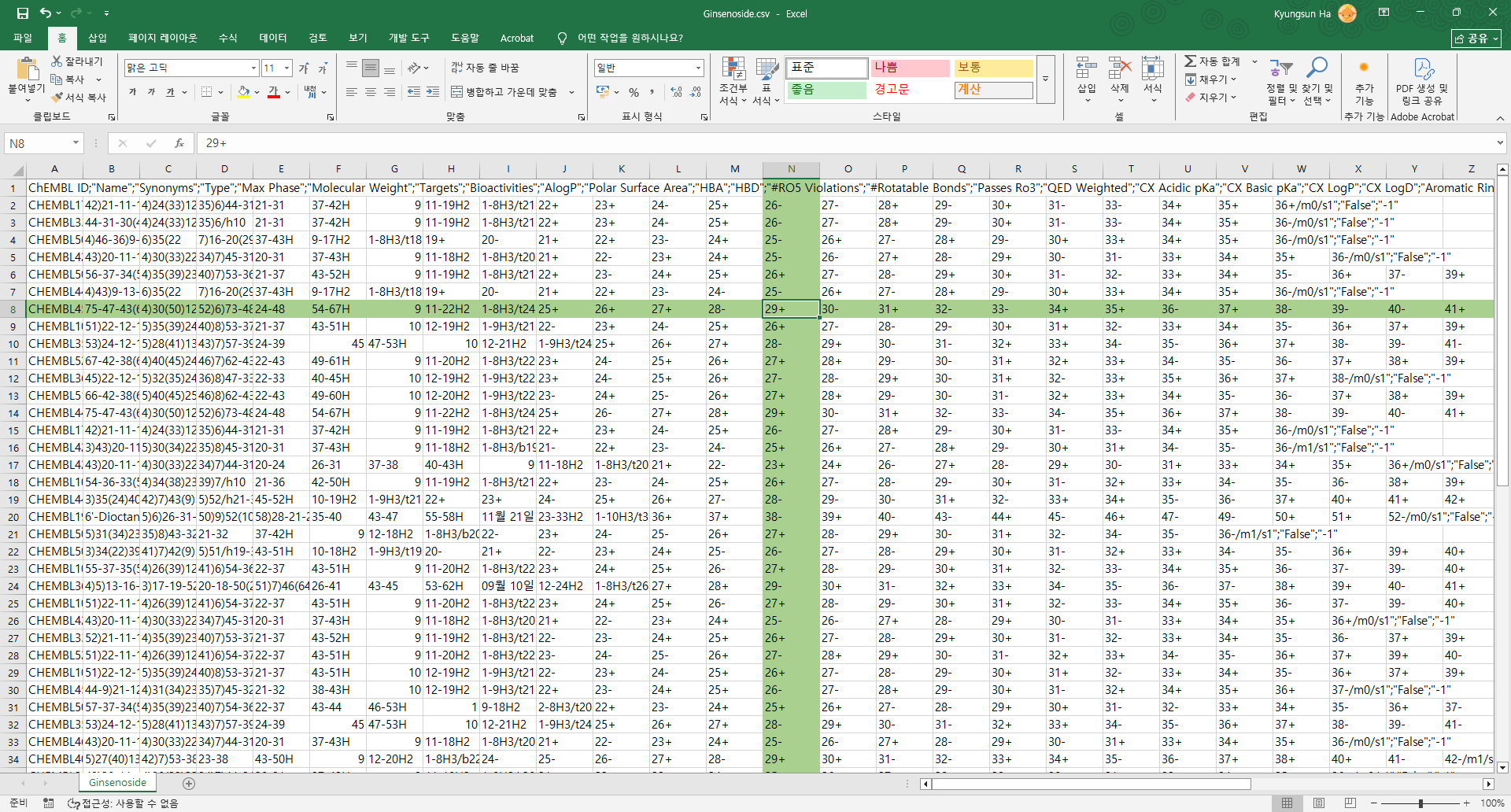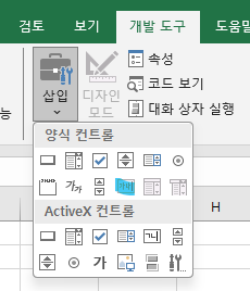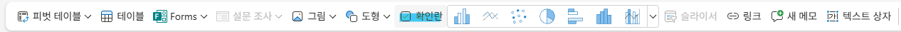영상에서는 Alt+N+C+B로 삽입하던데 나는 개발 도구까지 가서 삽입했음... 영상 속 리본메뉴에는 삽입란에 체크박스가 있었다. 아무튼 그래서 내껀 구닥다리임... ㅡㅡ