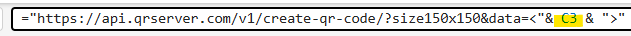 =LAMBDA(text, IMAGE("https://api.qrserver.com/v1/create-qr-code/?size150x150&data=<"& text & ">"))