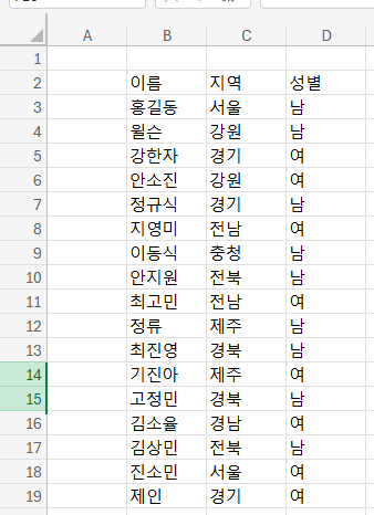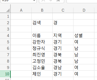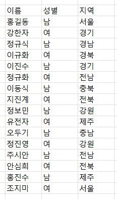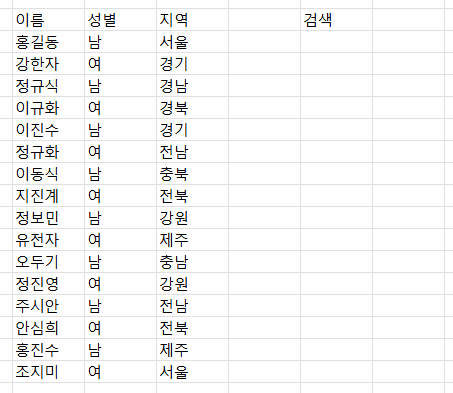 여기 가상의 명단이 있다. 그리고 검색 바로 뭘 할거냐면 지역으로 회원을 검색할거다.