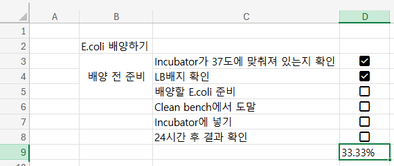 엑셀에서도 체크박스를 넣을 수 있다!